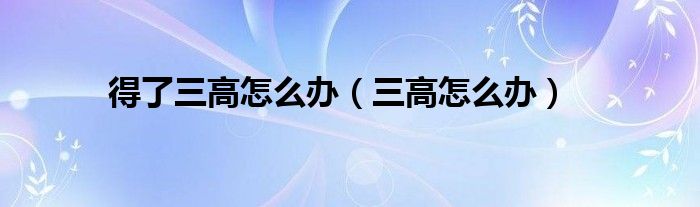 本文,得了三高怎么办,三高怎么办到此就分享完毕,希望对大家有所帮助。