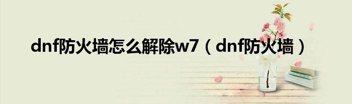 以上就是【dnf防火墙怎么解除w7,dnf防火墙】相关内容。