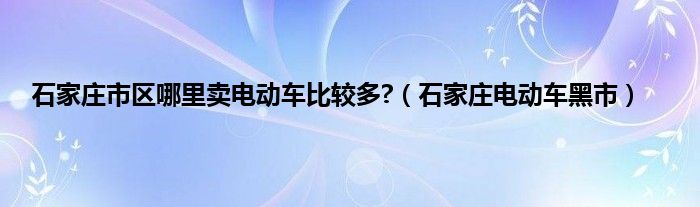 以上就是【石家庄市区哪里卖电动车比较多?,石家庄电动车黑市】相关内容。