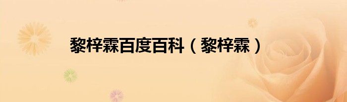 大家好,小问来为大家解答以上问题。黎梓霖百度百科,黎梓霖这个很多人还不知道,现在让我们一起来看看吧!