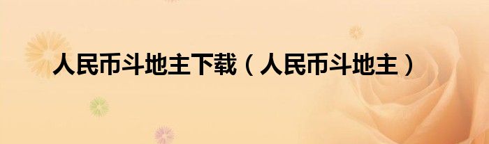 大家好,小问来为大家解答以上问题。人民币斗地主下载,人民币斗地主这个很多人还不知道,现在让我们一起来看看吧!