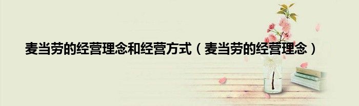 以上就是【麦当劳的经营理念和经营方式,麦当劳的经营理念】相关内容。