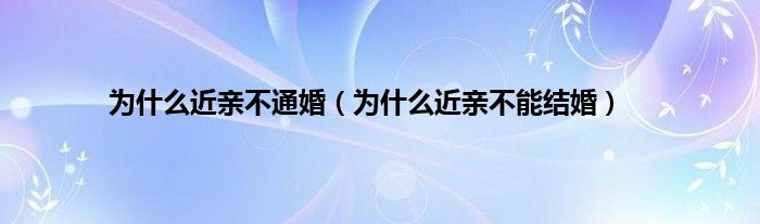 以上就是【为什么近亲不通婚,为什么近亲不能结婚】相关内容。