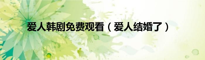 大家好,小问来为大家解答以上问题。爱人韩剧免费观看,爱人结婚了这个很多人还不知道,现在让我们一起来看看吧!