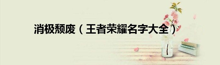 大家好,综合小编来为大家讲解下。消极颓废,王者荣耀名字大全这个很多人还不知道,现在让我们一起来看看吧!