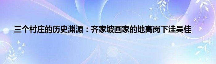 大家好,综合小编来为大家讲解下。三个村庄的历史渊源:齐家坡画家的地高岗下洼吴佳这个很多人还不知道,现在让我们一起来看看吧!