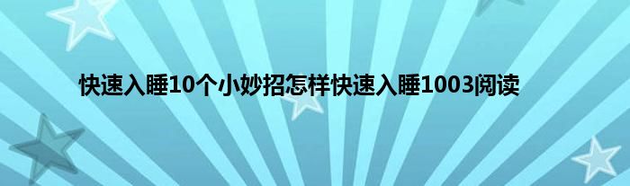 本文,快速入睡10个小妙招怎样快速入睡1003阅读到此就分享完毕,希望对大家有所帮助。