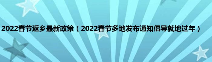 本文,2022春节返乡最新政策,2022春节多地发布通知倡导就地过年到此就分享完毕,希望对大家有所帮助。