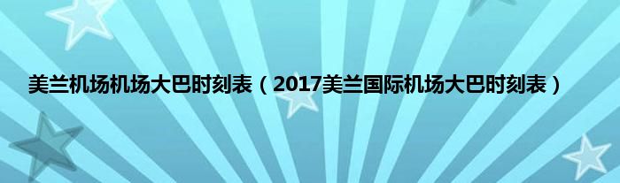 23、 以上是关于2017美兰国际机场大巴时刻表的详细介绍。希望对你有帮助。