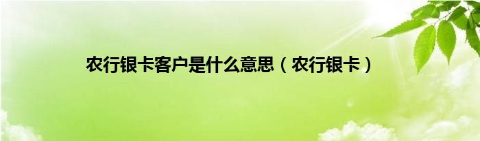 以上就是【农行银卡客户是什么意思,农行银卡】相关内容。