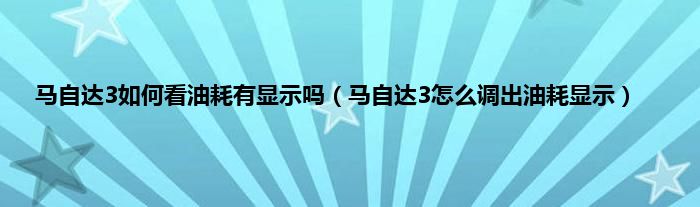 本文,马自达3如何看油耗有显示吗,马自达3怎么调出油耗显示到此就分享完毕,希望对大家有所帮助。