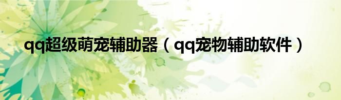 以上就是【qq超级萌宠辅助器,qq宠物辅助软件】相关内容。