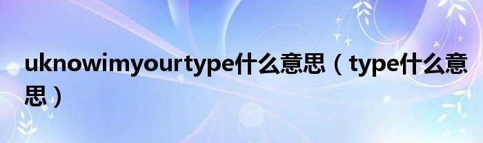 以上就是【uknowimyourtype什么意思,type什么意思】相关内容。