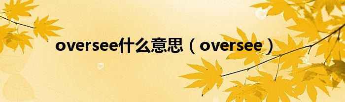 大家好,小问来为大家解答以上问题。oversee什么意思,oversee这个很多人还不知道,现在让我们一起来看看吧!